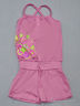 Полукомбинезон на лямках и на широкой резинке застегивается на кнопки. Украшен принтом. Есть 2 кармана. Ткань-кулир.