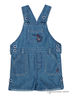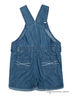 Модный укороченный полукомбинезон из тонкой джинсы. Полукомбинезон на регулируемых по длине бретелях на пуговицах, застежка - пуговицы, расположенные по бокам. На талии регулируемая внутренняя резинка, карманы расположены спереди и сзади; на груди карман украшен вышивкой в морской тематике; карманы сзади накладные, декорированы вышивкой. Низ брючин с подворотом, закрепленных декоративным хлястиком.