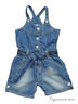 Полукомбинезон-шорты из легкой хлопковой ткани с двумя карманами, с поясом. Застежка спереди на пуговицы. Оттенок джинсовой ткани может немного отличаться от представленной на фото.