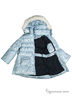 Теплое полупальто прямого силуэта. Воротник-стойка. Капюшон с отстегивающимся мехом. Длинные рукава. Застежка на молнию. Спереди 2 накладных кармана. Талия со шлевками и подчеркнута поясом.
