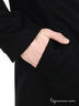Детали: отложной воротник, застежка на три пуговицы, два прорезных кармана с листочком, два внутренних прорезных кармана на пуговице и один открытый прорезной кармашек, рукав длинный пиджачного типа, вшитые подплечики, сзади пришитый ремешок в качестве отделки, полупальто с одной шлицей.
