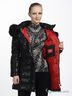 Детали: капюшон пристегнут на молнию, мех отстегивается, декоративная прострочка изделия, полочка украшена пуговицами, один внутренний карман на липучке, два внешних кармана, дополнительная внутренняя манжета в виде широкой резинки, по боковым швам пришиты шлевки, застежка изделия на молнию и кнопки, ветрозащитная планка, шелковистая подкладка