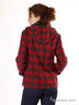 Короткий бушлат в клетку с капюшоном и застежкой на пуговицы. Высокий воротник. Декоративные планки на рукавах.