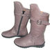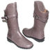 Сапоги из светло-лиловой кожи с боковой молнией и пряжкой.
