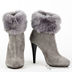 Стильные демисезонные полусапоги из натуральной замши на каблуке. Резиновая подошва без перфорации приклеена к основанию изделия. Стелька и подкладка из натуральной кожи. Застежка на молнию. Декорированы мехом.