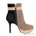 Потрясающие ботильоны из велюра(замши) на высоком каблуке и платформе подчеркнут вашу индивидуальность. Декорированы вставками разного цвета. Имеют сбоку застежку на молнии. Материал подкладки – шелк обувной на утеплителе. Стелька-кожа.