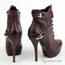 Стильные кожаные полусапоги на платформе с коротким голенищем. Платформа с прорезиненной подошвой без протекторов приклеена к основанию изделия. Подкладка и стелька выполнены из кожи. Завязываются на шнурки спереди и застегиваются на молнию. Низкий взъем. Декорированы хлястиками с металлическими защелками.