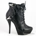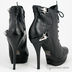 Стильные кожаные полусапоги на платформе с коротким голенищем. Платформа с прорезиненной подошвой без протекторов приклеена к основанию изделия. Подкладка и стелька выполнены из кожи. Завязываются на шнурки спереди и застегиваются на молнию. Низкий взъем. Декорированы хлястиками с металлическими защелками.