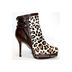 Элегантные полусапоги из комбинации натуральной кожи кофейного цвета и стриженого меха под леопард на высоком каблуке. Застегиваются на молнию. Украшены металлическими декоративными заклепками и необычным жгутиком.