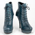 Стильные кожаные полусапоги на платформе с коротким голенищем. Платформа с прорезиненной подошвой без протекторов приклеена к основанию изделия. Подкладка и стелька выполнены из кожи. Завязываются на шнурки спереди и застегиваются на молнию. Низкий взъем. Декорированы хлястиками с металлическими защелками.