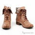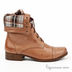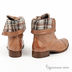 Стильные полусапоги на небольшом каблуке завязываются шнурками. Декоративный клетчатый отворот.