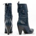 Стильные полусапожки на каблуке застегиваются на молнию. Декоративные отворот и шнуровка.