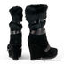 Теплые меховые полусапоги на танкетке. Устойчивая платформа, украшены декоративными ремешками на пряжке.