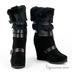 Теплые меховые полусапоги на танкетке. Устойчивая платформа, украшены декоративными ремешками на пряжке.