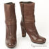 Классические полусапоги из гладкой кожи. Толстый устойчивый каблук, подошва с высокой протекцией. Сбоку застегивается на молнию. Украшены бронзовыми кнопками.