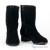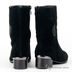 Стильные женские полусапоги из натуральной замши на тонкой жесткой подошве с мелкой протекцией. Застегиваются на молнию. Внутри утеплены натуральным мехом, декорированы стразами.