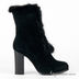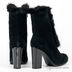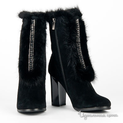 Стильные женские полусапоги из натуральной замши на тонкой жесткой подошве с мелкой протекцией. Застегиваются на молнию. Внутри утеплены натуральным мехом. Декорированы мехом и стразами.