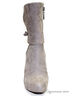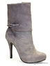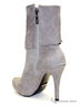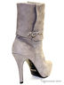 Изысканные полусапожки на небольшой скрытой платформе и высоком каблуке. Оформлены сверху манжетой, которая фиксируется сбоку тонкими кожаными завязками в виде бантика. Застежка-на молнию. Выполнены из светло-серого нубука. Внутри-ткань обувная с тонким подкладом, стелька-кожа. Высота платформы: ок. 1,5 см, высота каблука: ок. 11 см. Высота голенища: ок.17 см, обхват 26 см. Подошва: тунит. Рекомендуем подбирать обувь больше на размер. Сделано в Бразилии.