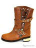 Винтажные полусапожки выполнены из натуральной высокачественной кожи .Изюминкой этой модели является голенище, украшенное металлическими клепками разной формы и крупная молния. Еще одна необычная деталь декора – каблук с металлической вставкой. Внутри- мех овчины.Подошва-натуральная кожа с профилактикой из противоскользящего и износостойкого материала.Высота каблука 4см.Высота голенища ок22 см.Объем голенища регилируетсчя молнией..Обувь рекомендуем подбирать размер в размер.Произведено в Турции.
