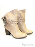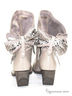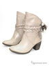 Стильные и гармоничные полусапоги от KLIMINI выполнены из натуральной мягкой кожи серо-бежевого цвета и украшены объемными украшениями в виде "косички" и контрасного банта.Внутренняя отделка выполнена из натуральной кожи. Широкое голенище компенсирует отсутствие молнии. Устойчивый каблук имеет форму"казачка".Высота каблука ок7,5см.Материал подошвы: п\у.Рекомендуем подбирать обувь больше на размер.Произведено в Бразилии.