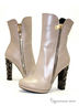 Чудесные женские ботильоны позволят KLIMINI вам выглядеть восхитительно. Модель выполнена из натуральной кожи бежевого цвета.Верх модели декорирован крупной молнией.Устойчивый каблук украшен интересным рисунком под черненный "металл".Боковая внутренняя молния позволяет модели отлично сидеть на ноге. Внутри - подкладка и стелька из натурального меха. Высота каблука ок.11,высота плато ок1см.Высота голенища ок.15см.Объем голенища ок.28см.Подошва тунит.Рекомендуем подбирать обувь размер в размер.Произведено в Турции.