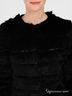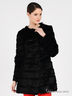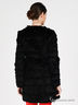 Оригинальный полушубок из меха кролика на шелковистой подкладке. Округлый вырез горловины, длинный рукав. Застегивается на крючки. Меховые ленты перемежаются с кожаными. Будьте неповторимой!