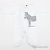 Трикотажные ползунки с удобной застежкой. Оригинальный принт на полочке, круглый вырез горловины, длинные рукава.