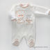 Велюровые ползунки для мальчика, ванильного цвета. Спереди украшены очаровательным принтом и вышивкой.