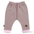 Ползунки прямого силуэта. В пояс вставлена резинка. Низ брючины украшен аппликацией.