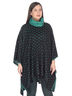 Пончо прямоугольной формы с зафиксированными боковыми краями выполнено 2-цветной вязкой. Пончо надевается через голову и дополняется шарфом-снудом. Изделие великолепно подойдёт будущим мамочкам. Преимущество данной модели заключается в достаточно свободном силуэте и удобстве в процессе носки. Пончо лёгкое, хорошо драппируется. Размер изделия зависит от длины и ширины полотна. Размер L - длина 70 см, ширина 110 см; размер XL - длина 80 см, ширина 120 см.