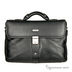 Портфель. Одно отделение под клапаном на замке. Внутри имеется одно отделение под бумаги, большой карман на молнии и два незакрывающихся кармашка. С задней стороны - "умный карман", который можно использовать как обычный карман или для размещения портфеля на тролль-системе чемодана. С лицевой стороны карман под клапаном, в котором имеются специальные отделения под авторучки, карточки, аксессуары. Подкладка - черный нейлон, фурнитура - матовое серебро. Одинарная, жесткая, короткая ручка. Длинный регулируемый плечевой ремень с наплечником из натуральной кожи. Дно мягкое, форма.