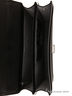 изящный стильный портфель из натуральной кожи с тиснением. Стенки изделия плотные. На задней части так же один большой карман на клепке. Основное отделение застегивается на застежку клапан с кодовым замком. Внутри одно просторное отделение. Есть отделы для портмоне, мобильного, ручек + карман на молнии и еще один открытый отсек. Очень комфортная плотная ручка. Цвет фурнитуры - золото. Ножек нет, но портфель отлично стоит.