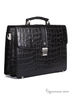изящный стильный портфель из натуральной кожи с тиснением. Стенки изделия плотные. На задней части так же один большой карман на клепке. Основное отделение застегивается на застежку клапан с кодовым замком. Внутри одно просторное отделение. Есть отделы для портмоне, мобильного, ручек + карман на молнии и еще один открытый отсек. Очень комфортная плотная ручка. Цвет фурнитуры - золото. Ножек нет, но портфель отлично стоит.