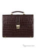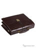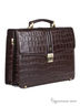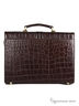 изящный стильный портфель из натуральной кожи с тиснением. Стенки изделия плотные. На задней части так же один большой карман на клепке. Основное отделение застегивается на застежку клапан с кодовым замком. Внутри одно просторное отделение. Есть отделы для портмоне, мобильного, ручек + карман на молнии и еще один открытый отсек. Очень комфортная плотная ручка. Цвет фурнитуры - золото. Ножек нет, но портфель отлично стоит.
