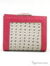 Портмоне женское выполнено из натуральной кожи. Внутри 2 отделения для купюр, откидное отделение для карточек, отделение для мелочи на рамочном замке. Портмоне закрывается на кнопку.