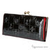 Портмоне женское из натуральной кожи с рамочным замком. Основное отделение закрывается на кнопку. Внутри 2 отделения для купюр, 1 отделение на молнии, 5 карманов для кредиток, пластиковое окно и 4 дополнительных кармана. На задней стенке карман для мелочи на рамочном замке с 2 отделениями.