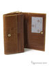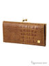 Портмоне женское из натуральной кожи с рамочным замком. Основное отделение закрывается на кнопку. Внутри 2 отделения для купюр, 1 отделение на молнии, 5 карманов для кредиток, пластиковое окно и 4 дополнительных кармана. На задней стенке карман для мелочи на рамочном замке с 2 отделениями. Упаковано в фирменную упаковку.