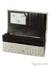 Портмоне женское, из натуральной кожи. Закрывается на кнопку. Внутри 3 отделения для купюр, 1 отделение для мелочи на молнии, 5 карманов для кредиток, пластиковое окно и 4 дополнительных кармана. На задней стенке дополнительный карман.