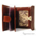 Модель жёсткой конструкции. Имеет 2 отделения для купюр, отделение для монет на рамочном замке и отделение для карт на кнопке. Внутри открытый карман, карманы для 20 карт, карман-окошко. Портмоне закрывается клапанным замком.