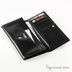 Кошелек женский лаковый,черного цвета. На тыльной стороне имеется карман и карман для мелочи на молнии. Внутри три отделения для купюр, пять отделений для кредитных карт и один скрытый карман, подкладка атлас.