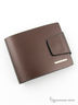 Горизонтальное портмоне из натуральной кожи с одним перегибом. Имеет одно отделение для купюр. На левой половине кошелька расположен карман с прозрачным окошком и потайной карман .