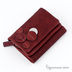 Женское портмоне из натуральной кожи гладкой фактуры. Имеет мягкие стенки. Застегивается на клапан с кнопкой. Внутри отстегивающийся карман на молнии, восемь визитниц, четыре открытых кармана, один большой карман. Портмоне декорировано кожаными и металлическими вставками.