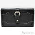 Элегантное портмоне выполнено из натуральной кожи. 2 отделения на кнопках. В одном - 2 отдела под мелочь, в другом - кармашки под визитки и денежные купюры, пластиковый файл для документов на авто.