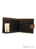 Портмоне выполнено из натуральной кожи. Модель мягкой конструкции. Имеет 2 отделения для купюр и отделение для монет на молнии. Внутри 6 открытых карманов, полукарман, откидной карман – окошко, карманы для 8 карт. Портмоне закрывается с помощью кнопки.