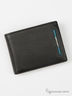 Портмоне из натурального материала закрывается пополам. Отделение для мелочи на кнопке. Два отделения для купюр, 3 отделения для кредитных карт, 2 открытых кармашка, 2 кармана-сетка. Вмещает денежные купюры РФ любого номинала. Размер: 11-2,5-9 см.