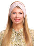 Женская двойная повязка на голову из шерстяной пряжи с добавлением ангоры. Край изделия украшен дорожкой страз разного диаметра в тон пряжи.