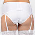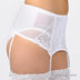 Оригинальный пояс из эластичной сетчатой ткани с кружевными вставками и декоративной вышивкой. Застегивается на крючки в три позиции, дополнен несъемными пажами для чулок.
