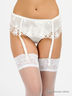 Стильный пояс для чулок с пажами выполнен из тонкой сетчатой ткани с вышивкой. Застегивается на три крючка в три позиции, верх на резинке.