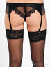 Оригинальный пояс для чулок с пажами. Выполнен из кружевной ткани с вышивкой и шелковистого материала. Спереди и сзади дополнен вертикальными косточками. Застегивается на два крючка в три позиции.