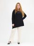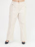 Прямые брюки с эластичным поясом. 2 закругленных кармана спереди. 2 кармана сзади с клапанами на кнопках. Рельефные швы спереди и сзади. Длина по внутреннему шву ок.74 см, ширина по низу ок.50 см. Параметры фотомодели: рост 172 см, российский размер 48.